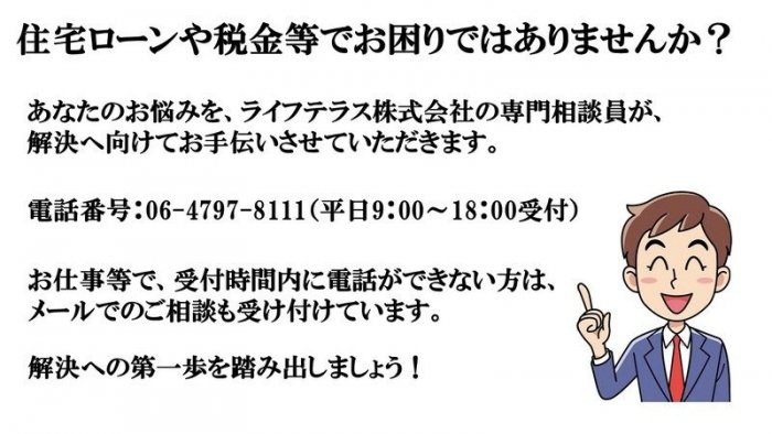 大阪で、下記のような不動産に関するお金の問題の解決は、ライフテラス株式会社へお任せ下さい!