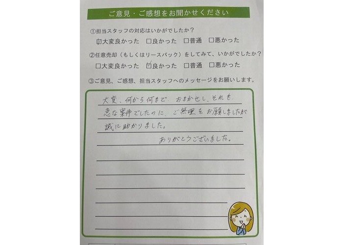 相談者様からアンケートをいただきましたので、ご紹介したいと思います。